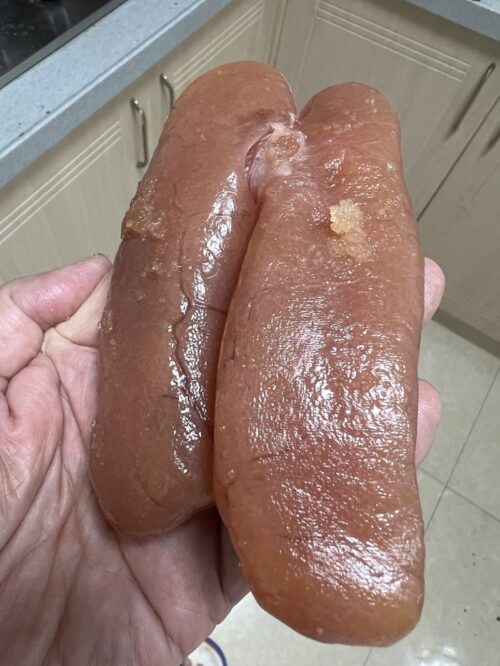 しっかりしまって,たらことしてもうまそう。でも今回は明太子つくり、次工程に入りました.