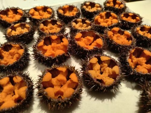 ようやく来ました。冬の海胆 一つ一つは小さいけれど,食べてみたらしっかりと旨い!納得の味。1つ40元 10個は350元です。!