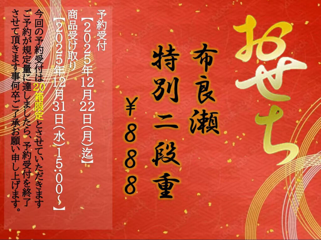 今年も布良濑の特別お節のご予約受付を開始いたしました。